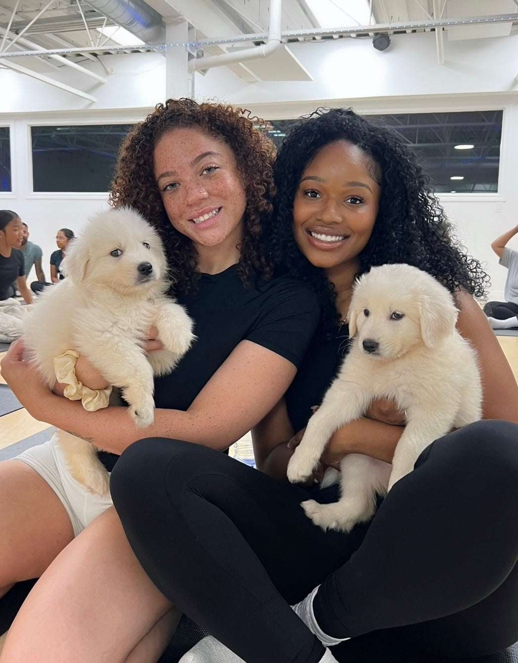Then enjoy 20 minutes of puppy playtime! Snap photos, cuddle up, and soak in all the puppy love, because yoga is always better with furry friends.
